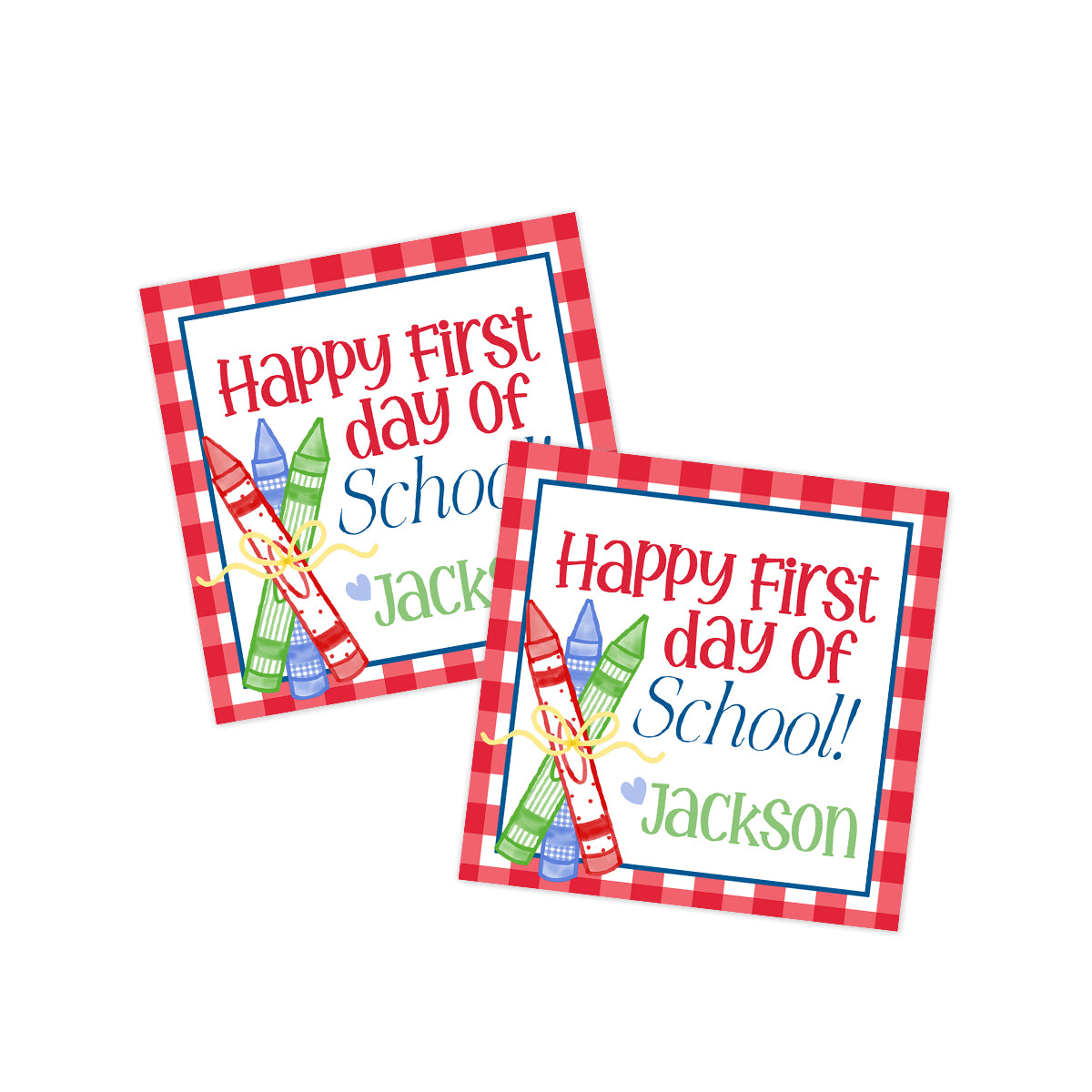Happy First Day of School Red Check Crayon Gift Tag