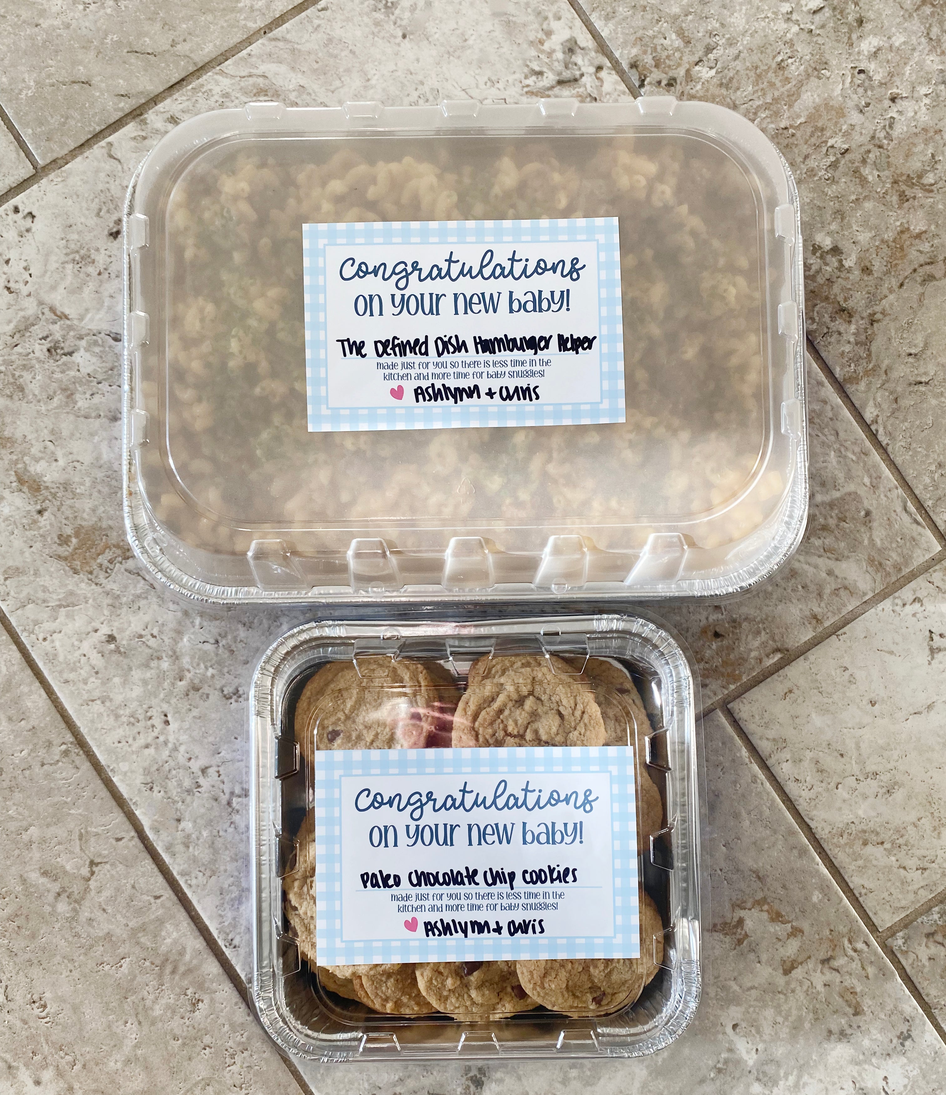 New parents get a lot of food, so these labels not only add some prettiness to meals but you can write in the name of the dish and your names so they can remember what is what!
