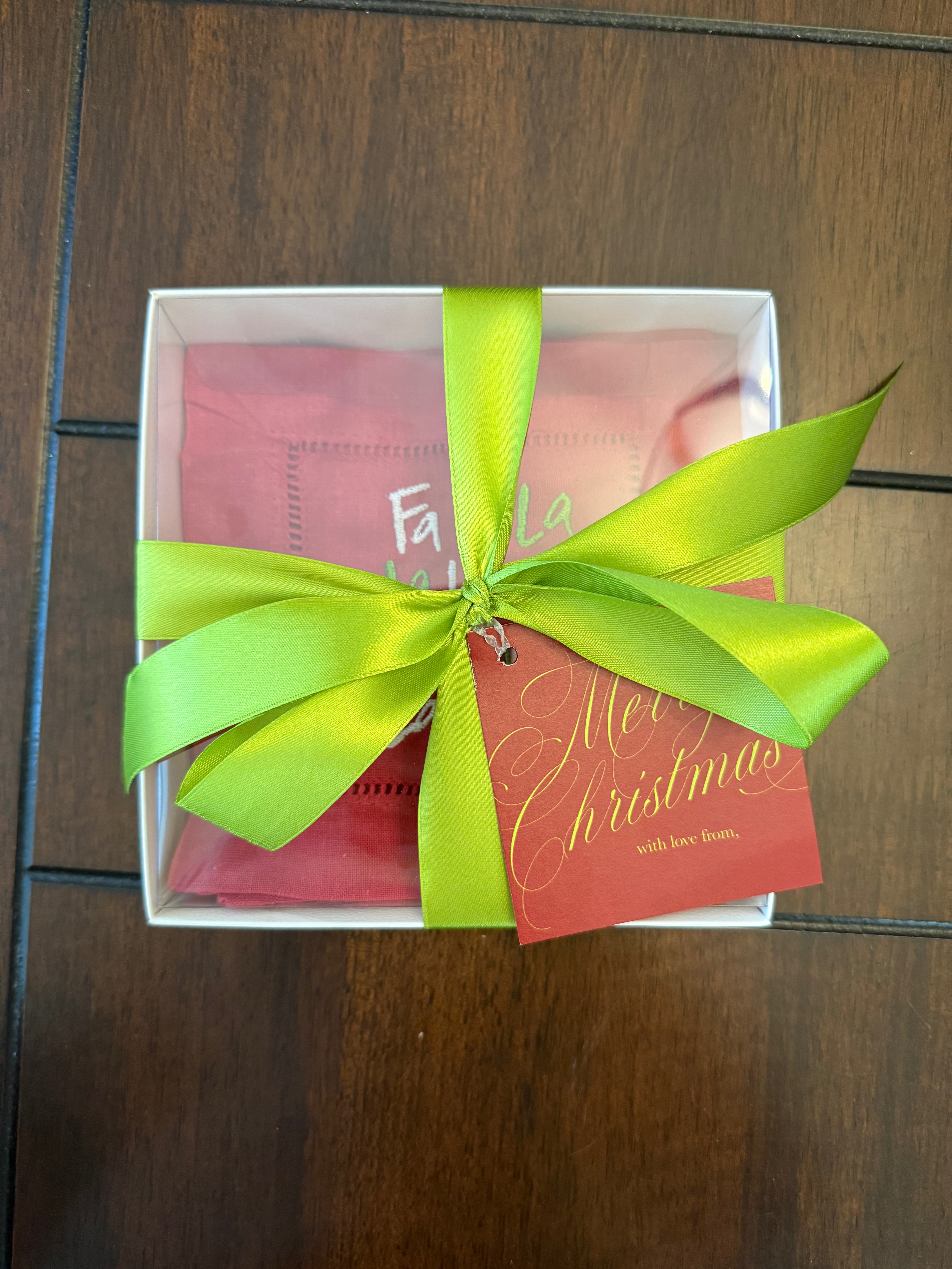 Set of 4 Embroidered Linen Cocktail Napkins | Wrapped with ribbon & a Gift Tag - the perfect hostess gift!