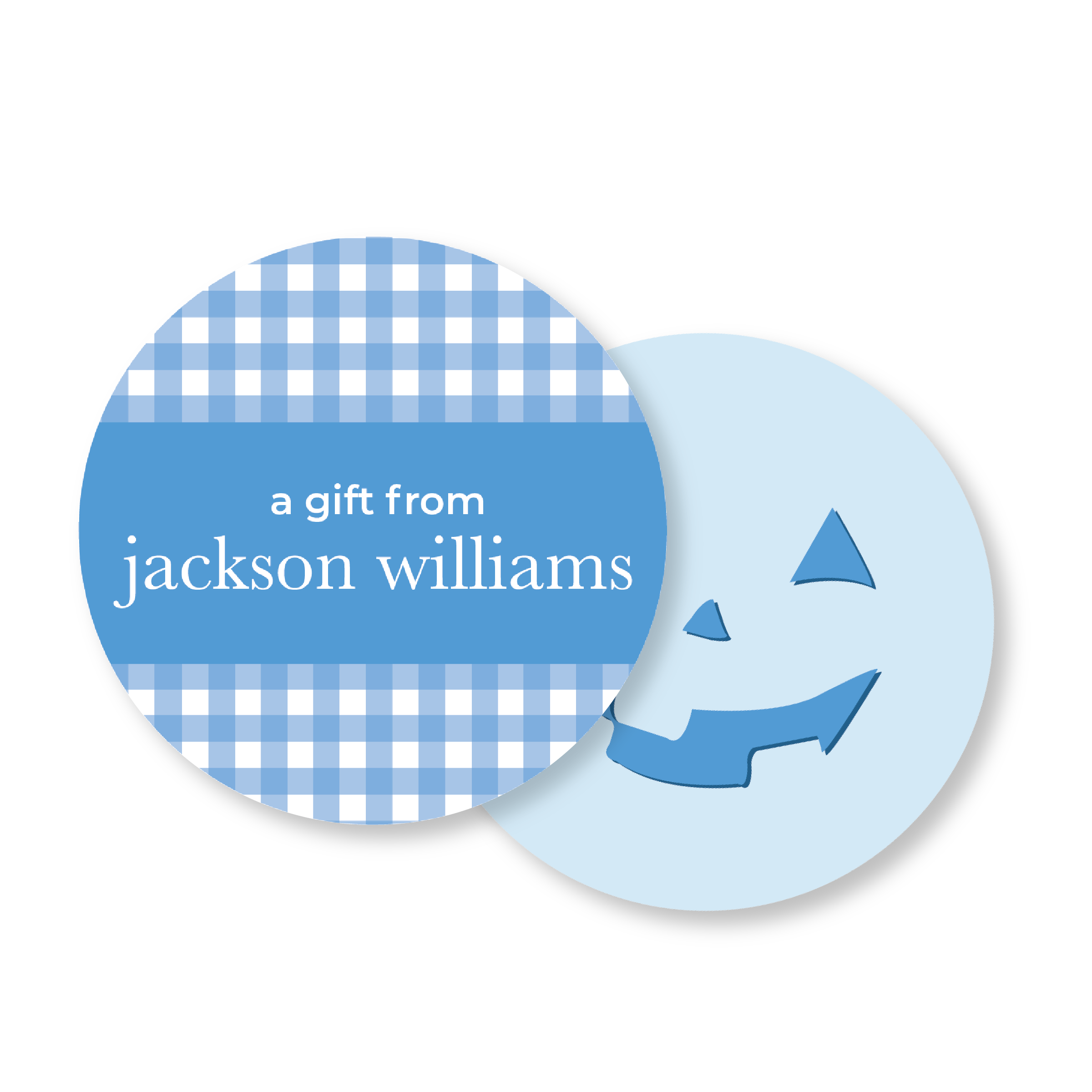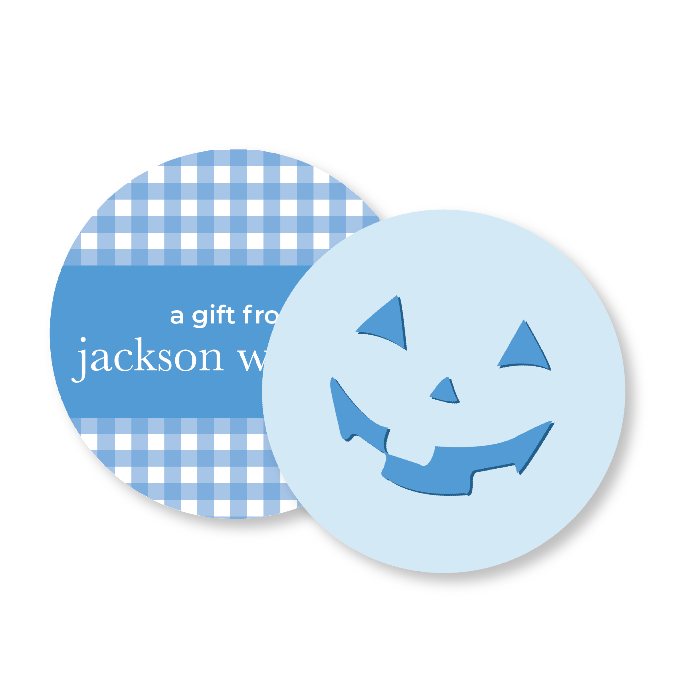 Blue Gingham Pumpkin Circle Halloween Gift Tag