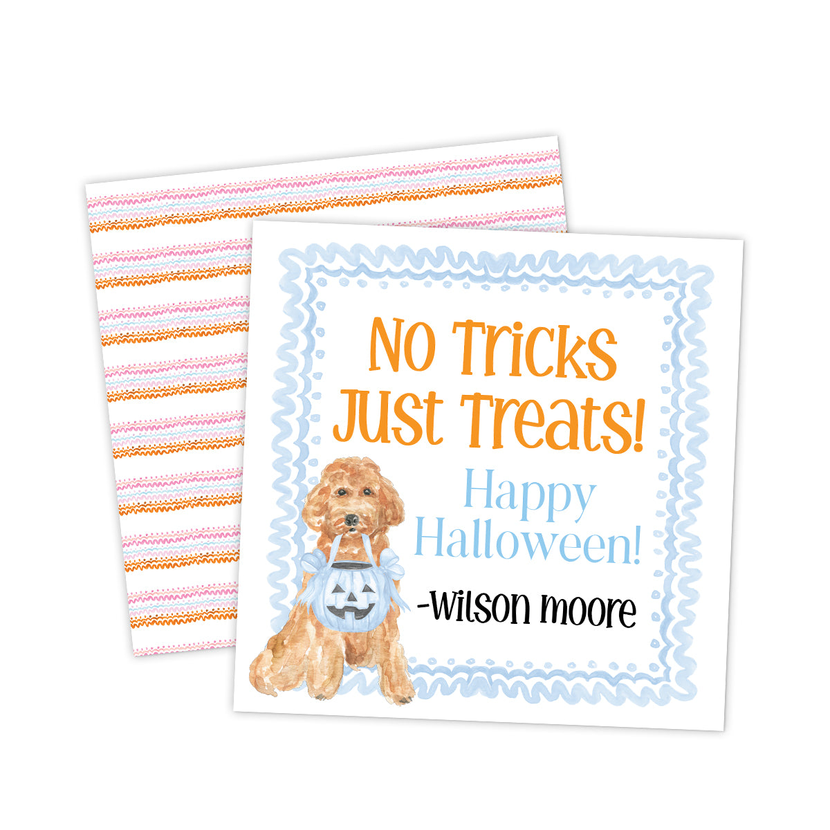 No Tricks Just Treats Blue Halloween Gift Tag