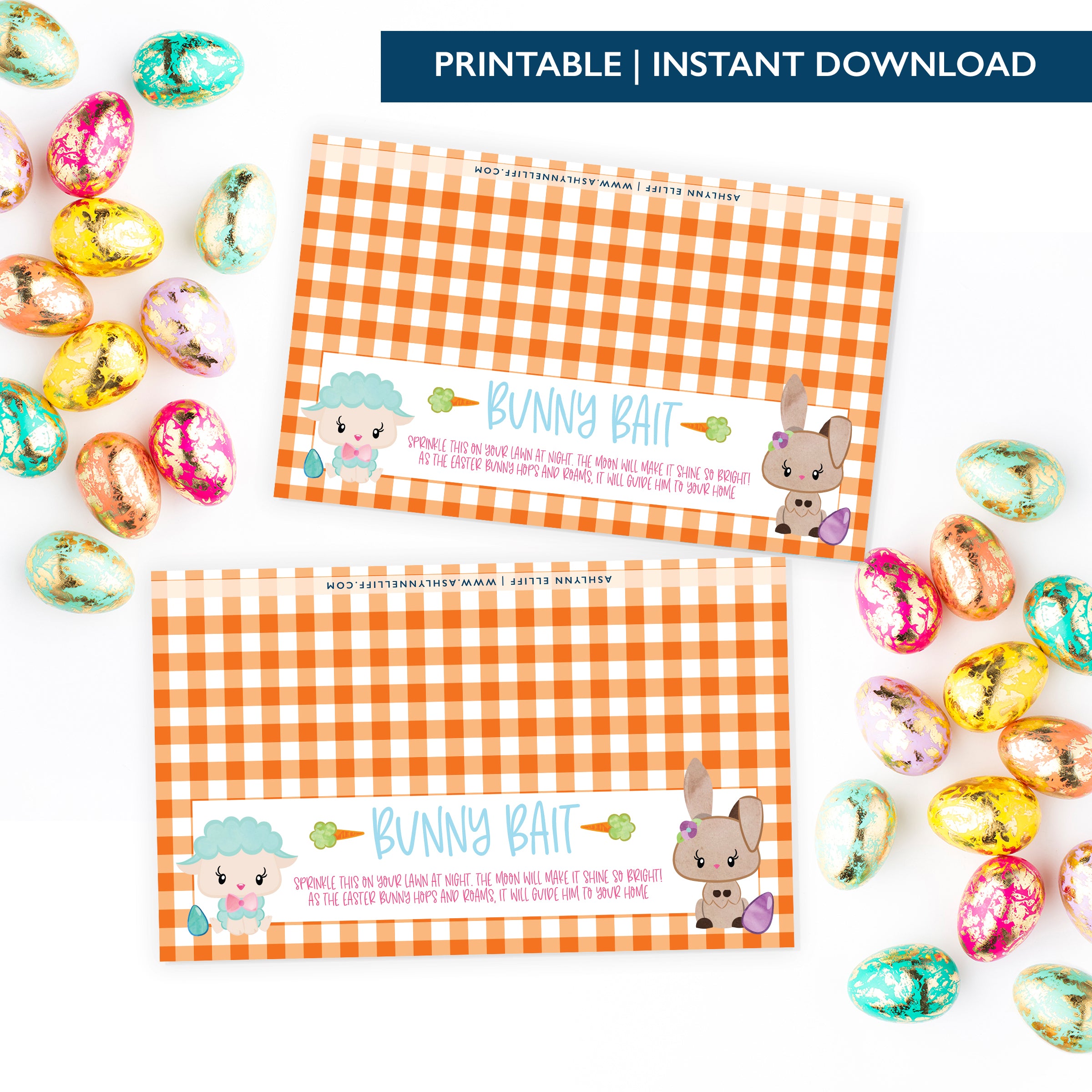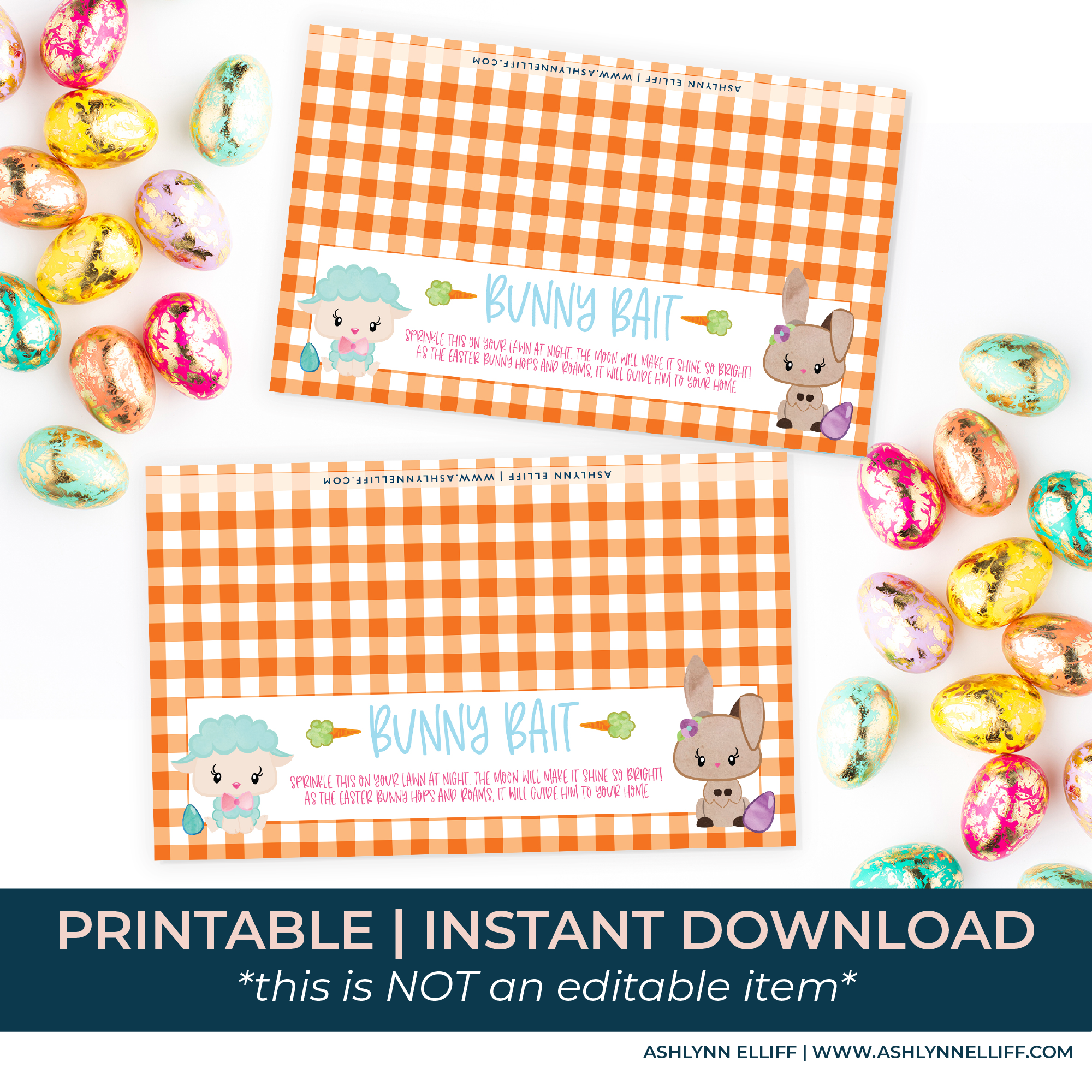 Printable (Instant Download) Orange Bunny Bait Goodie Bag Toppers