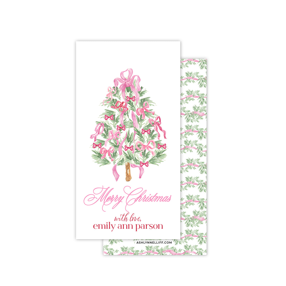 Pink Tree Rectangle Holiday Gift Tag