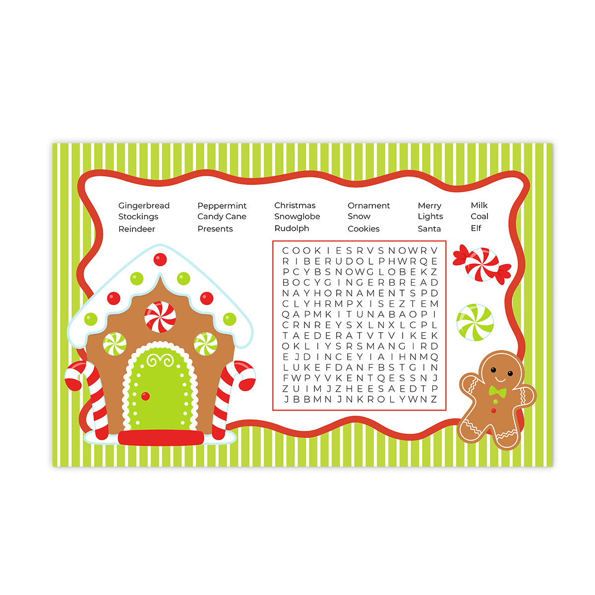 Gingerbread Kids Activity Holiday Laminated Placemat